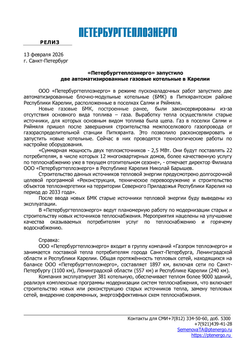 «Суммарная мощность двух теплоисточников — 2,5 МВт. Они будут поставлять 22 потребителям, в числе которых 12 многоквартирных домов, более качественную услугу по теплоснабжению уже в текущем отопительном сезоне», — отмечает директор Филиала ООО «Петербургтеплоэнерго» в Республике Карелия Николай Барышев.
